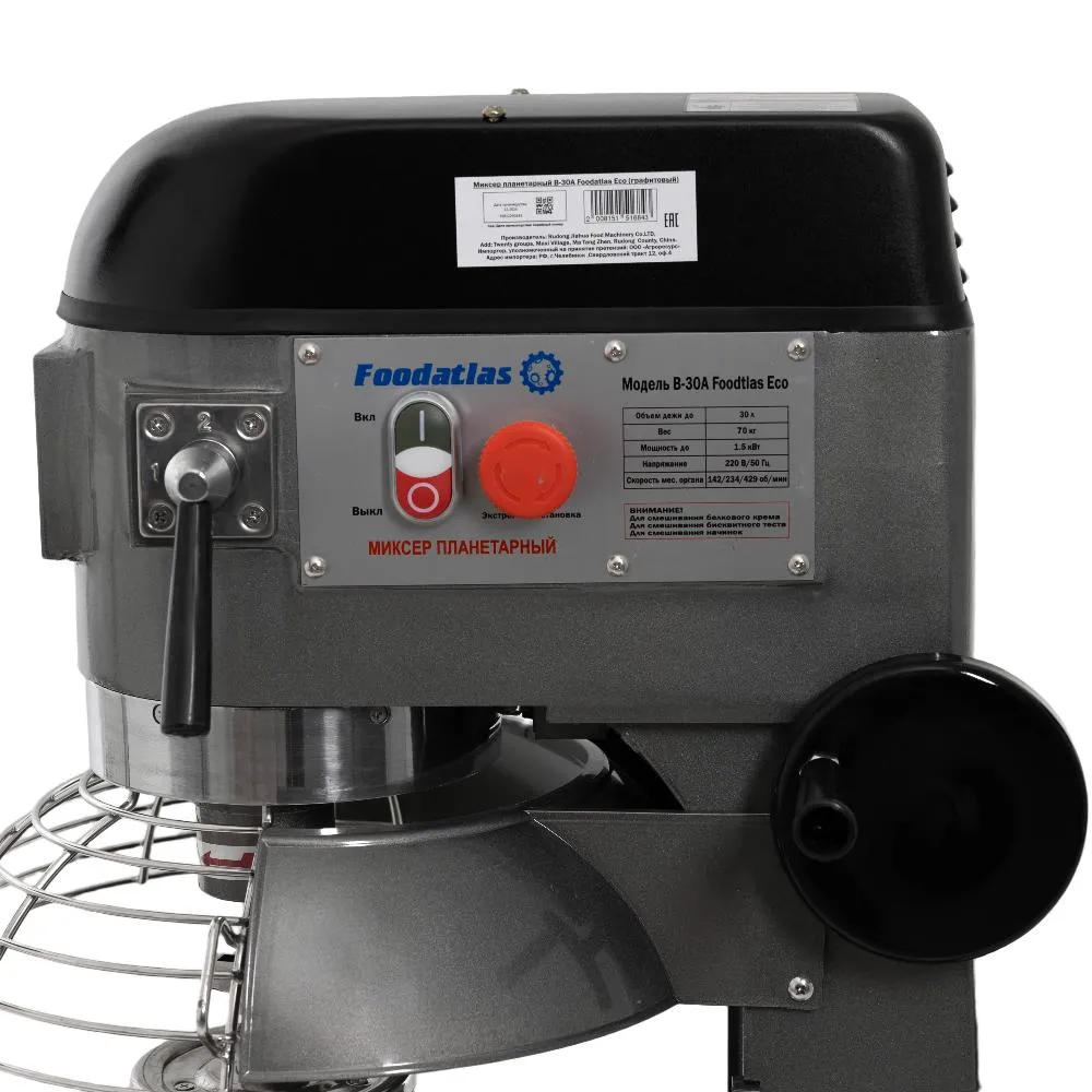 Миксер планетарный B-30A Foodatlas Eco (графитовый) не предназначен для производства дрожжевого, слоеного теста и других видов крутого теста.
